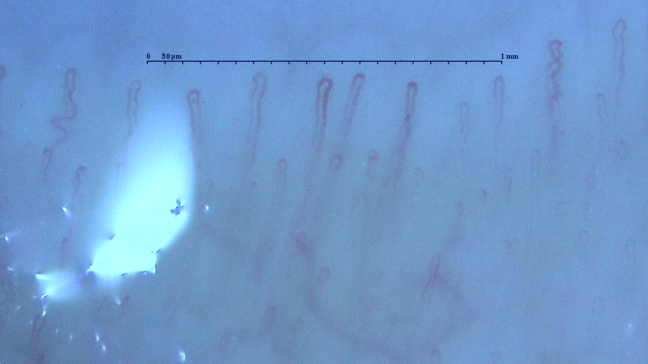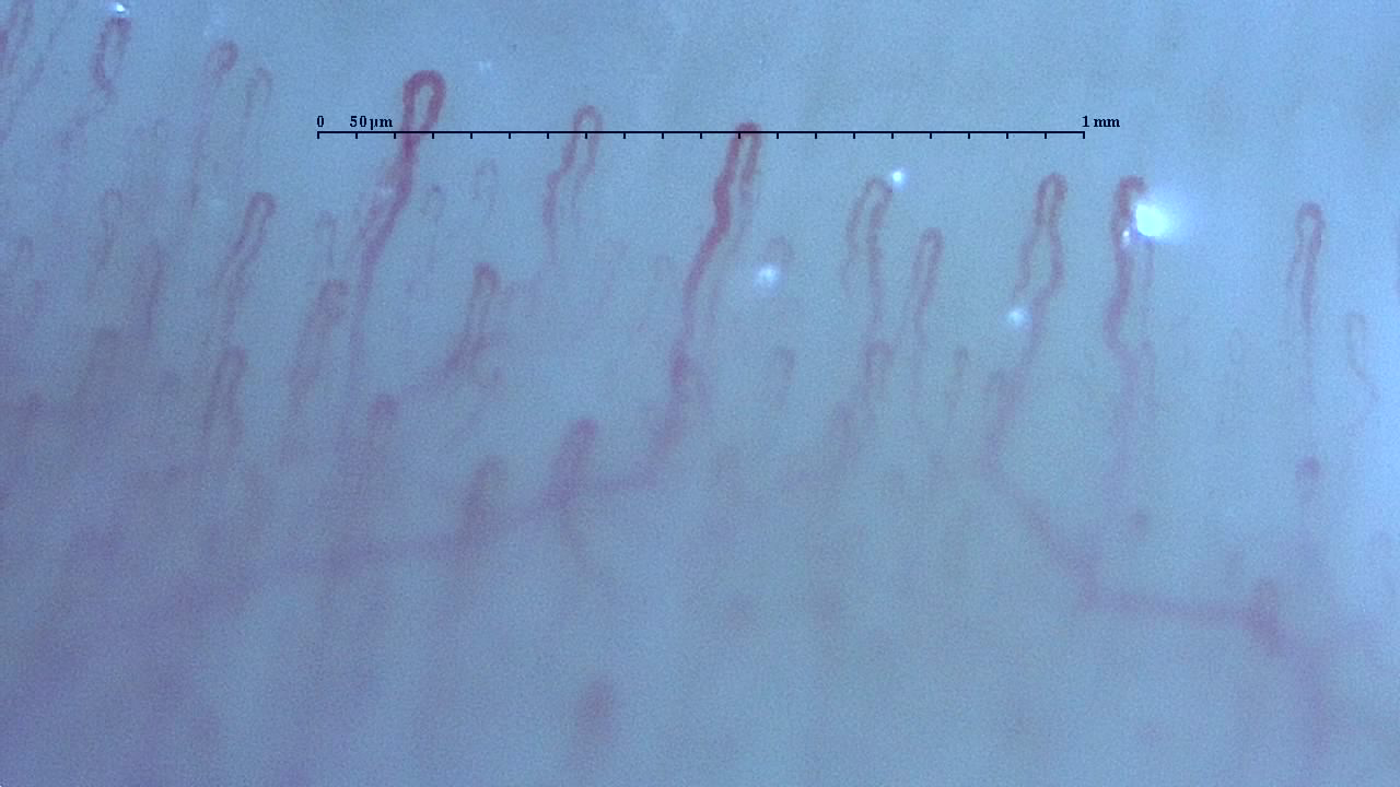 一般的に毛細血管は1mmの中に7から10本程度が正常です。
